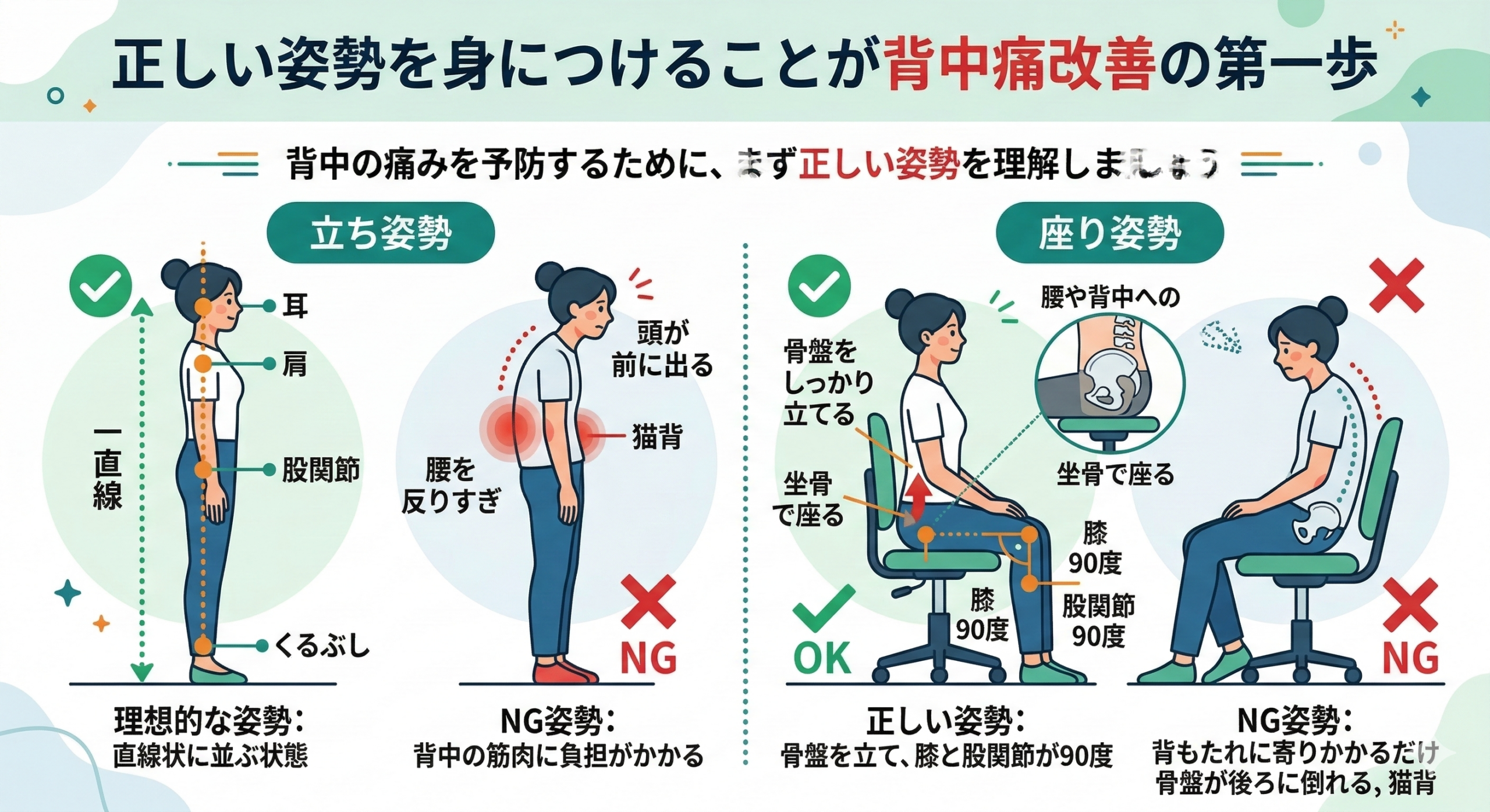 正しい姿勢を身につけることが背中痛改善の第一歩