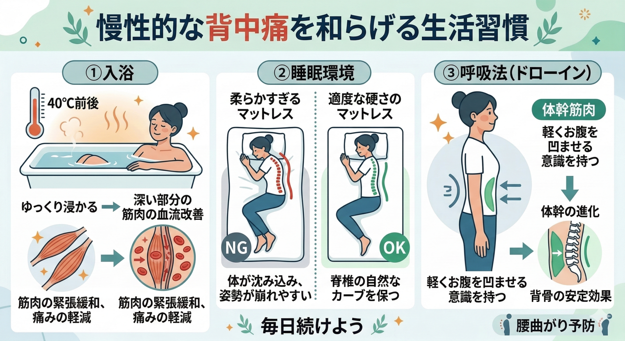 慢性的な背中痛を改善するためには、日常生活の習慣も大切です。